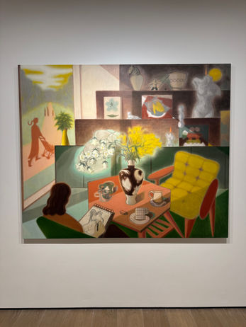 Guimi You’s exhibition at Almine Rech was a captivating exploration of the quiet, intimate moments of daily life. Her work, as she says, reflects her real-life experiences—simple acts like traveling, having coffee in cafes, reading, or tending to plants. The way she captures these ordinary, yet meaningful moments is deeply personal, but also universally relatable. What stands out to me is the atmosphere she creates in each piece. At first glance, her paintings offer a sense of coziness and calm, drawing you into the peaceful rhythm of her daily activities. But as you spend more time with the work, you begin to notice the intricate details and thoughtful design behind each composition.